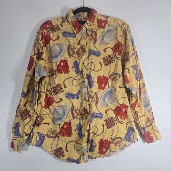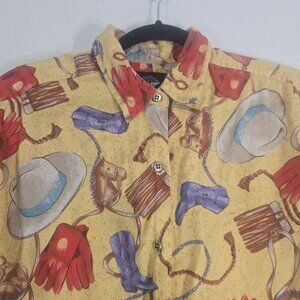 Dockers Vintage Western Button Down Shirt Women Medium Equestrian Cowboy Yellow