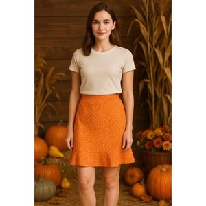 Dockers Women Orange Floral Print Skirt Size 10 Cotton Blend Ruffle Hem Lined