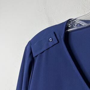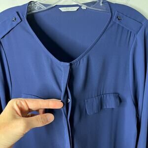 Dockers Women's Blouse Size PXL Navy Blue Button Up Top Long Sleeve Semi Sheer