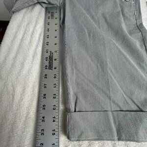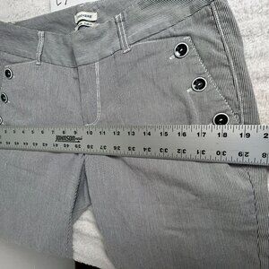 These Dockers women's Bermuda shorts feature a classic black-and-white striped design with a mid-rise curvy fit. Designed with belt loops, pockets, and button accents, they offer both style and functionality. Finished with a cuffed hem and a zip with hook-and-eye closure, they are machine washable for easy care.