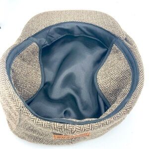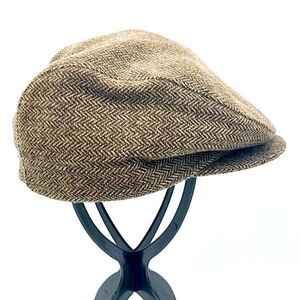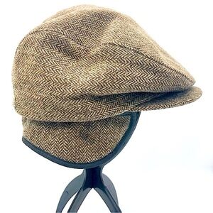 Dockers wool blend newsboy cap, fold down ear flaps, in a tan tweed/herringbone style cap. EUC Size Large