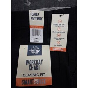 Dockers Workday Khaki Pants Classic Fit Smart 360 Flex Men's W34 L32 Black Color,4 Way Stretch,Flexible Waistband, No Wrinkles and a Hidden Zip Secure Pocket .