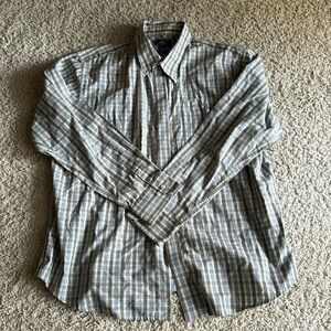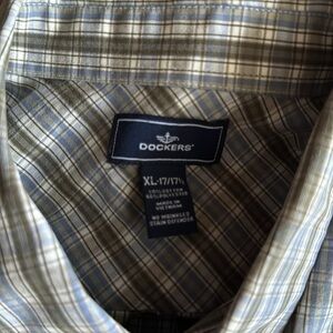 Dockers XL muted green and blue checked long sleeve button down shirt