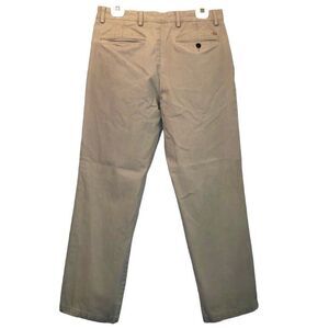 These classic khakis are made of a buttery tan cotton fabric. They have side offset pockets and welt back pockets with a straight leg. In excellent used condition.