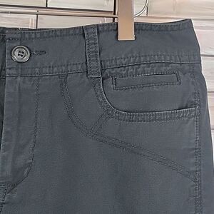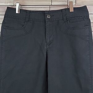 Cotton spandex blend cropped casual in Dockers mid rise curvy fit with stitching accent detailing at pockets. Good pre-owned condition. Normal signs of wash and wear.