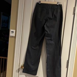 Dockets dress pants, gray black stripe detailed in close up picture. Two front pockets.