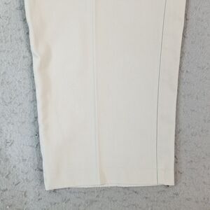 Good used condition light wear soft comfortable high quality cotton elastane blend flex stretch twill material measures about 17.5 in across the waistline 11.5 inch rise 25 inch inseam