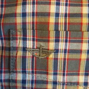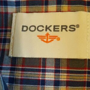Dockers men's button down shirt, taupe, navy blue, yellow plaid, 60% cotton L