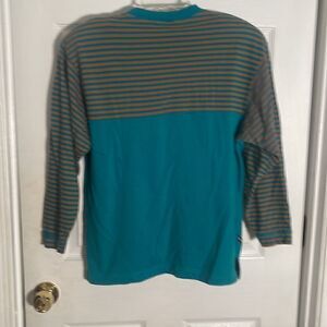 Vintage Teal & Brown Stripes long sleeves 100% cotton small slits each side