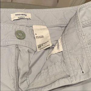 Dockers Favorite Fit Light grey 98% cotton, 2% spandex From waist to hem 27 1/2" Leg opening at hem 8" across
