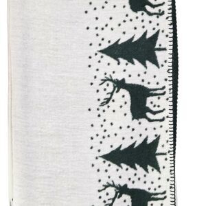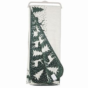 Docofil Warm Cozy And Soft Winter Throw Blanket Oversize Reversible Cotton Blend 51x67 Ivory and green. Deer Winter Forest Design. Made in Portugal