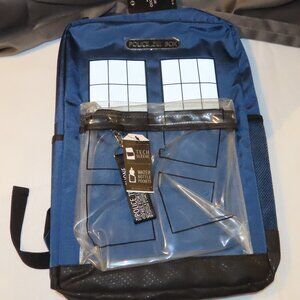 Doctor Who Blue Police Box Tardis Backpack with Clear Front Pocket