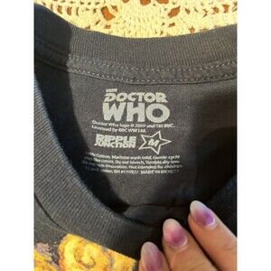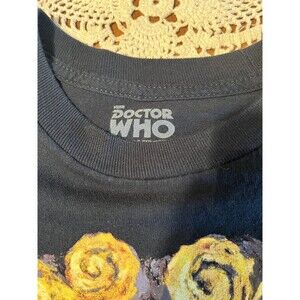 This navy T-shirt is a must-have for fans of the Doctor Who franchise. Featuring an exploding Tardis and Van Gogh's iconic artwork, this hard-to-find Ripple Junction shirt is perfect for science fiction and horror enthusiasts. Made in Honduras, this shirt is available in various sizes and is not signed or vintage. The shirt is from 2009 and is perfect for any Doctor Who fan or collector.