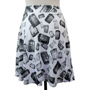 Doctor Who Tardis Skater Skirt Juniors Sz S White Gray Flare Mini Her Universe