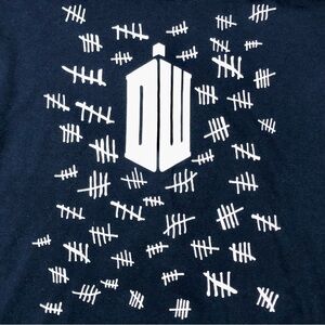 Doctor Who tee navy white DW tardis logo tally marks The Silence Episode M