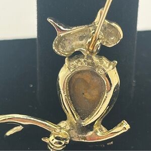 Doddz Jelly Belly style Owl Brooch with Striking Blue Stones. Signed.