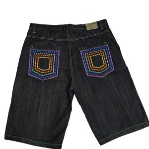 Dodeca Denim Jean Shorts Mens Sz 42 Skater Hip Hop Streetwear Decorative Pockets