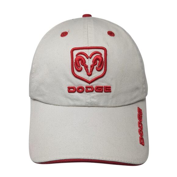 Dodge Logo Strapback Hat Beige One Size Adjustable Solid Embroidered