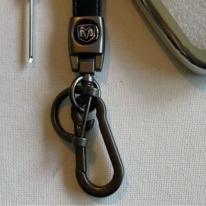 Dodge Logo key fob Keychain Black Leather and Key Fob Cover in Silver NWT