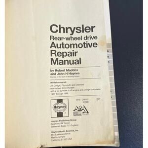 Dodge, Plymouth & Chrysler Rear-Wheel Drive 1971-89 by J H Haynes: Used