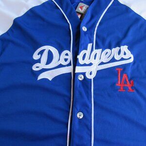 Dodgers LA Men's Embroidered Button Down Blue and White Baseball Jersey Size M