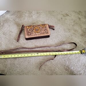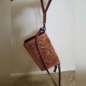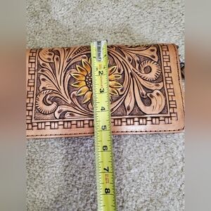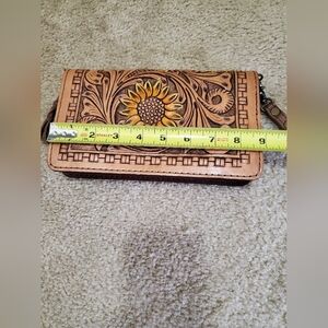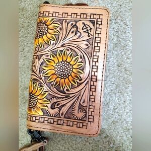 Dodi Jo's Handmade Leather Wristlet/Crossbody Sunflower Wallet