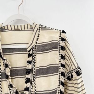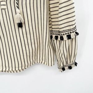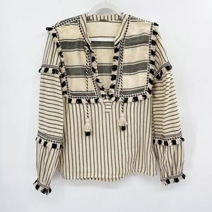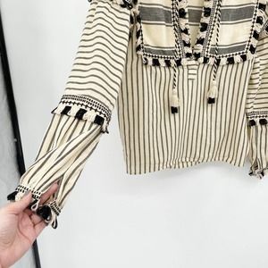 Dodo Bar Or Emanuelle Cotton Blouse Striped Size S Peasant Tassel Tie Fringe