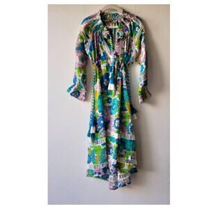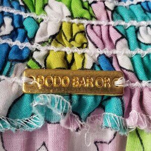 Dodo Bar Or Green Floral Retro Long Sleeve Girl's Cinch Waist Casual Dress