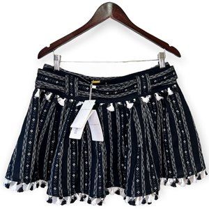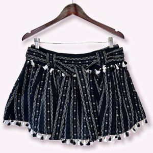 Dodo Bar Or Inga Women's Size M Tassel Belted Mini-Skirt Geometric Black & White