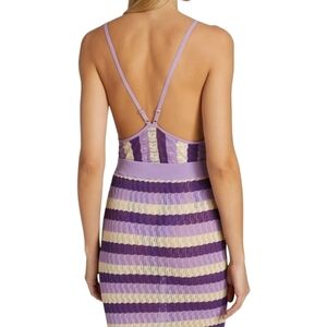 Dodo Bar Or Liv Striped Pointelle Knit Bodysuit, Size 8, Purple, NWT