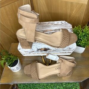 Dodo Elegant Tan Block Heel Sandals NWOT Women’s Size 10