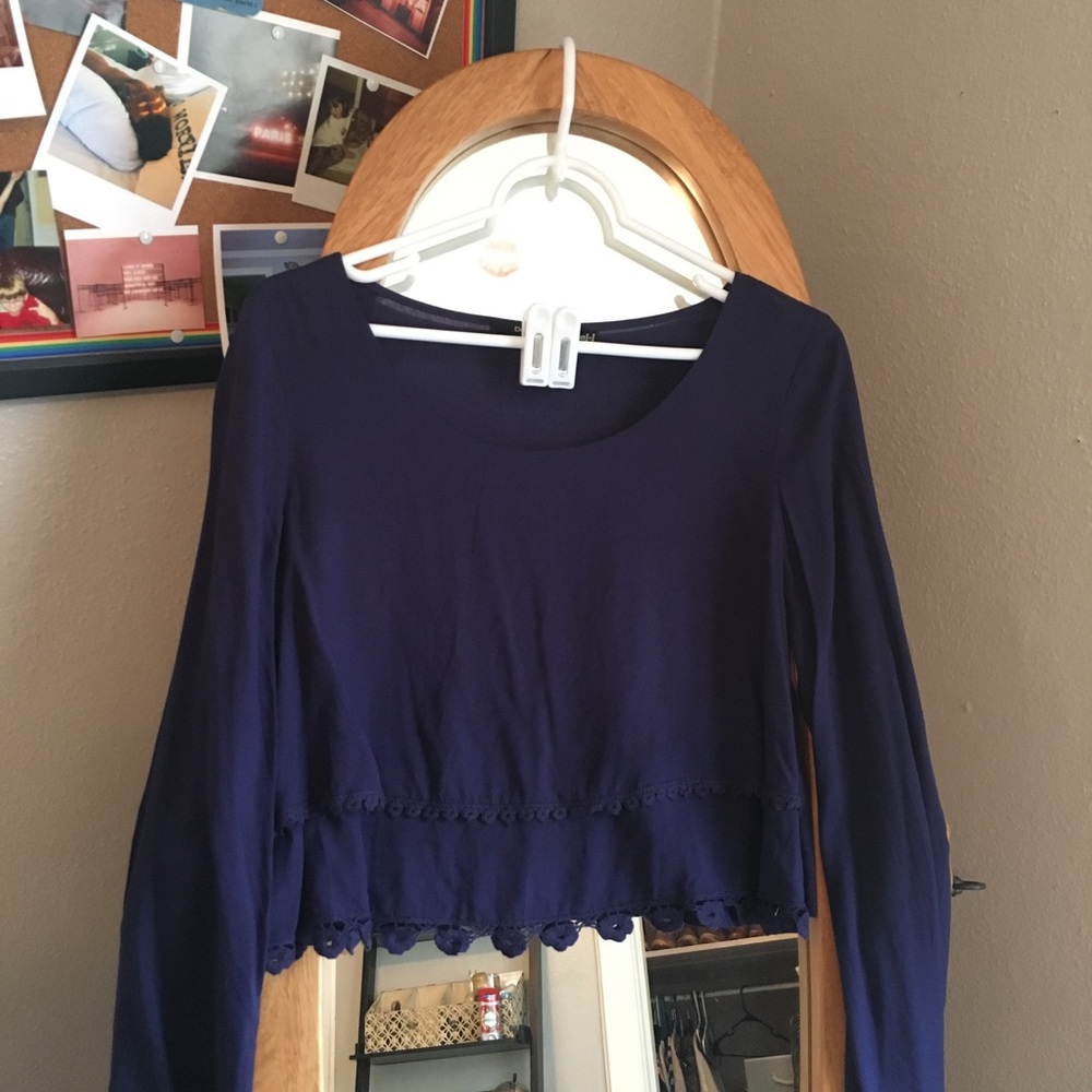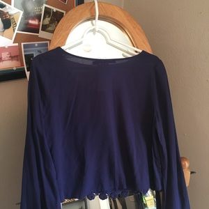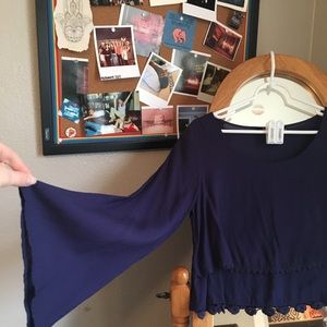 Navy, long sleeve crop top. Flare sleeves. Size Small.
