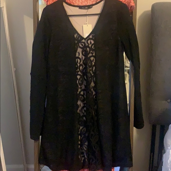 NWT long sleeve shift dress, lace detail. Bell sleeve.