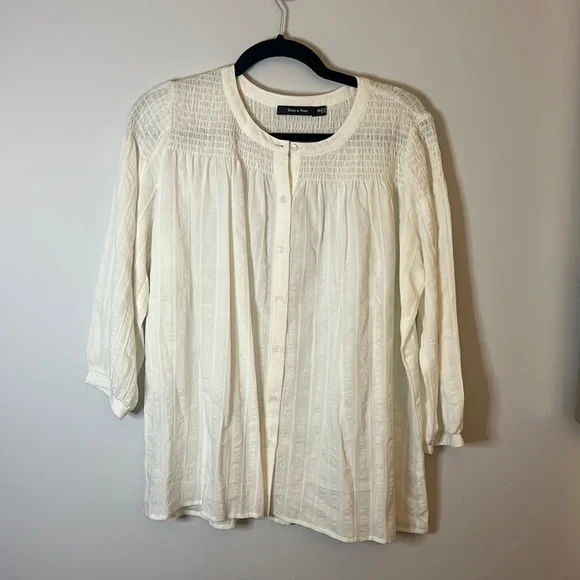 Super cute, 3/4 quarter sleeve guys like material with a cute design buttons down the front