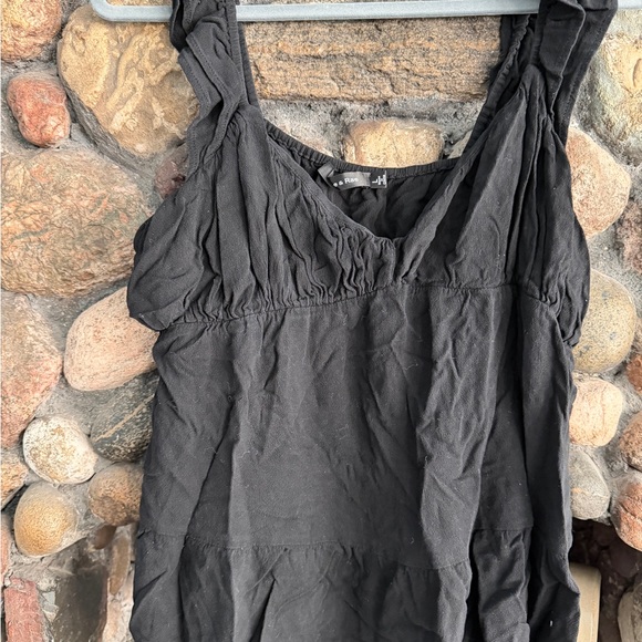 Chic black tank top with ruched details. Sleeveless and stylish. Perfect for layering or wearing alone.