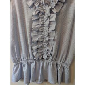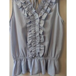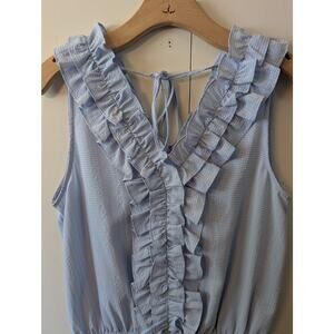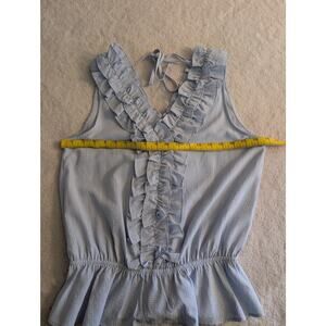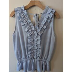 Doe & Rae Blue Ruffle V Neck Top
