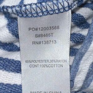 This Doe & Rae blouse features a charming blue and white striped pattern with ruffled short sleeves for a touch of elegance. The relaxed fit ensures comfort, making it a versatile addition to your wardrobe. Perfect for casual outings or a day at the office, this top combines style and ease effortlessly.