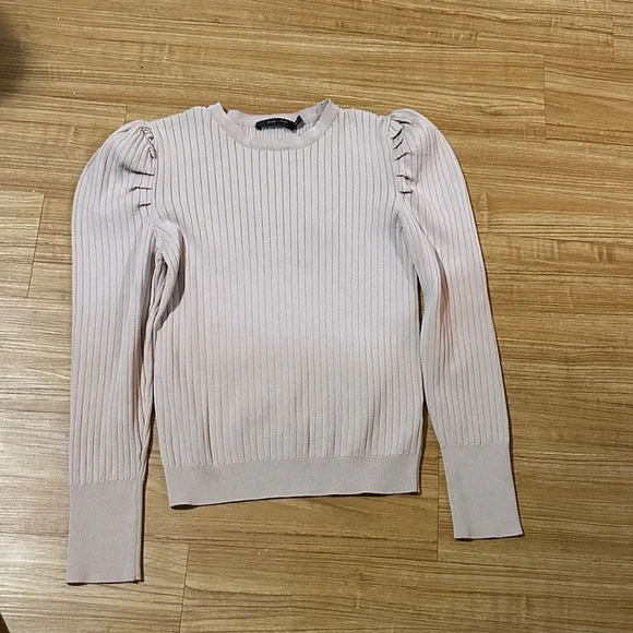 Chic ribbed top with a soft blush tone. Perfect for any occasion. Pit to pit 16 in Length 22 in