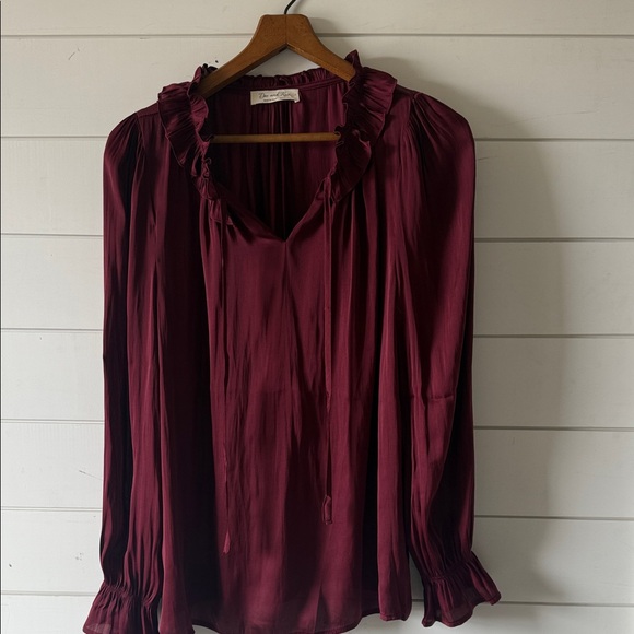 Doe & Rae Burgundy Ruffle Blouse