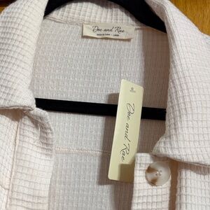 Stylish cream button-up shirt with a classic collar and front pockets. Perfect for casual wear. New with tags size large