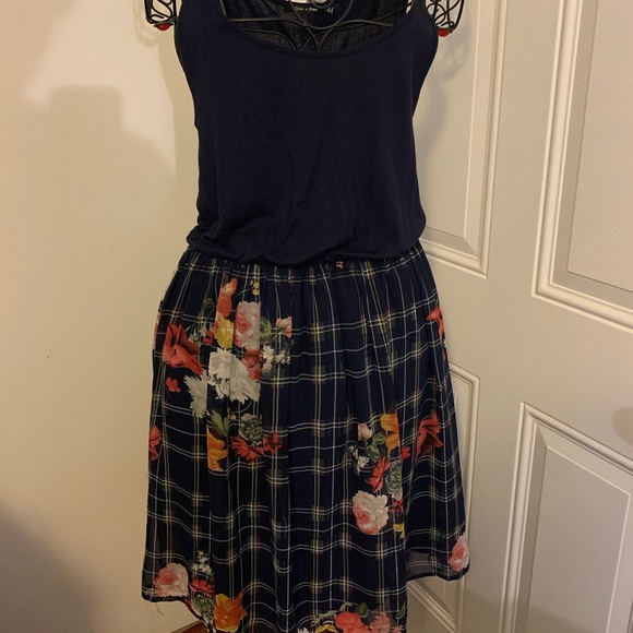 Comfy summer dress. Top is like a chiffon material with a dark blue slip attached under.