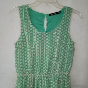 Doe & Rae Dress Womens M Green Floral Stretch Lined Cottagecore Sleeveless Flowy