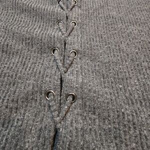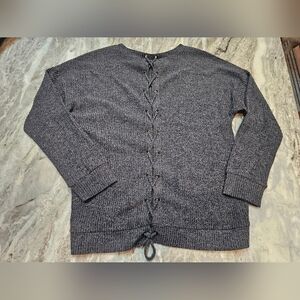 Doe & Rae Gray Ribbed Lace-Up Back Sweater Size Small