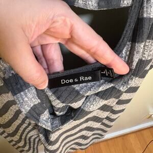 Doe & Rae Grey Stripe V Neck Cold Shoulder Long Sleeve Henley Button Down Large