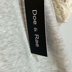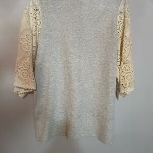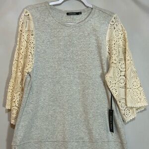 Doe & Rae Heather Gray Sweatshirt with Cream Lace Sleeves. Large
