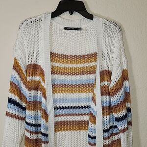 Doe & Rae Ivory, Blue & Tan Cardigan - Small NWOT