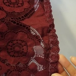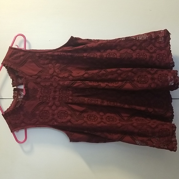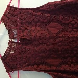 Burgandy/Maroon lace tank top, and lined.