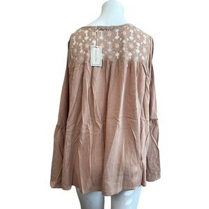 Doe & Rae Large Long Sleeve Blouse Lace Dusty Rose Blush Tunic Lightweight NWT