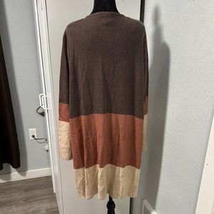 Stylish multicolor block pattern. Open front design. Ideal for layering.