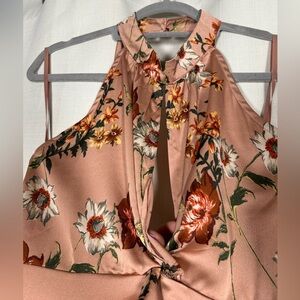 Doe & Rae Pink Floral Satin Halter Top Medium